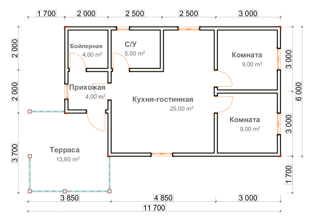 Размеры согласно схеме фундамента | Даны по наружным стенам. |