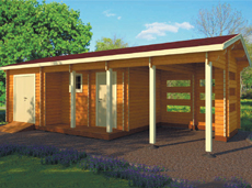 Впрочем, суть их хозяйственного предназначения от этого не меняется: они работают складами, мастерскими, бытовками, а при нужде – дополнительными кухнями и спальнями. Но данный проект не испортит внешнего вида участка: двускатная крыша с мягкой битумной кровлей, длинное крыльцо, застеленное террасной доской и частично огороженное изящным парапетом, распашная дверь в центральное помещение – все это делает хозблок похожим скорее на небольшой домик, нежели на хозяйственную постройку.