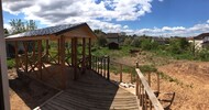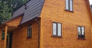 Дом в Липках – это оригинальный индивидуальный проект наших заказчиков. Размер сооружения 13х12 с просторной террасой. Для фундамента мы использовали металлические винтовые сваи, которые в дальнейшем зашили плитами ЦСП. Сам дом рассчитан для круглогодичного проживания, то есть применили утепление 200 мм., каменной ваты «PAROC». Наружная и внутренняя отделка имитация бруса, а в санузле и на террасе под плитку использовалась плита ЦСП. Высокая кровля позволила сделать полноценное чердачное помещение.
