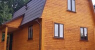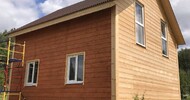 Баня 6х4 - Эта баня с наружными размерами 6х4 построена на основании нашего проекта «Баня-Брус – 09». Она была выполнена из профилированного бруса сечением 100х150 мм. шип-паз. В дальнейшем по желанию заказчика баню по наружным стенам обшили метталло-сайдингом. По внутренней части баня зафольгирована по всему периметру вместе с крышей. Внутреннее отделение парилки выполнено осиновой вагонкой, а комната отдыха и помывочная вагонкой хвойных пород. В комплект бани входят: стол и две лавки в комнате отдыха, душевой поддон со сливной гофрой и бак для воды на 60 литров в помывочной, который нагревается от печки, стеклянная дверь, банная заводская печь обложенная шамотным кирпичом , разводка электрики в кабель-канале под цвет дерева, УЗО, автомат. Хочу заметь, что внутреннюю планировку бани, расположение окон и дверей, а также цвет кровли заказчик выбирает самостоятельно.