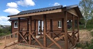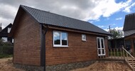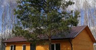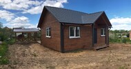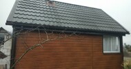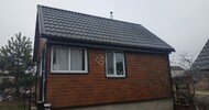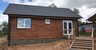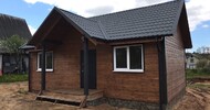 Проект в Смолевичах- это небольшой уютный домик дачный дом с двумя спальнями, санузлом, тамбуром и кухней-гостиной с распашными дверями, через которые вы попадаете в вместительную беседку с прекрасным видом на собственный благоустроенный дачный участок. Размеры дома 6х9 плюс беседка 4х2,5 , кровля накрыта металлочерепицей, цвет графит. Не большая кукушка над входом придаёт дому неповторимый шарм.