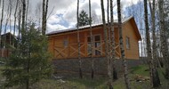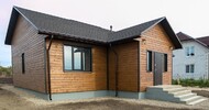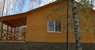 Дом у «Кургана Славы», его размер 8х9 м., выполнен из профилированного бруса 150х150 мм., предназначен для круглогодичного проживания. Часть фундамента выполнена из бетона, часть мы поставили столбы из асбестовой трубы диаметром 150 мм., таким образом мы снизили затраты на 40%. Пластиковые стеклопакеты с нанесением ламинации хорошо сочетаются с цветом кровли и водосточной системы.