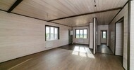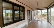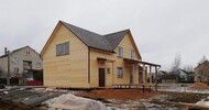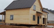 Дом в Чернице построен по каркасной технологии и предназначен как для межсезонного, так и для круглогодичного проживания. Мы немного изменили наш проект КД-4 с учётом пожеланий нашего заказчика, в итоге получился дом его мечты. Строение эстетически красиво и стильно выглядит, а большая терраса с видом на берёзовую рощу – это просто «бомба».